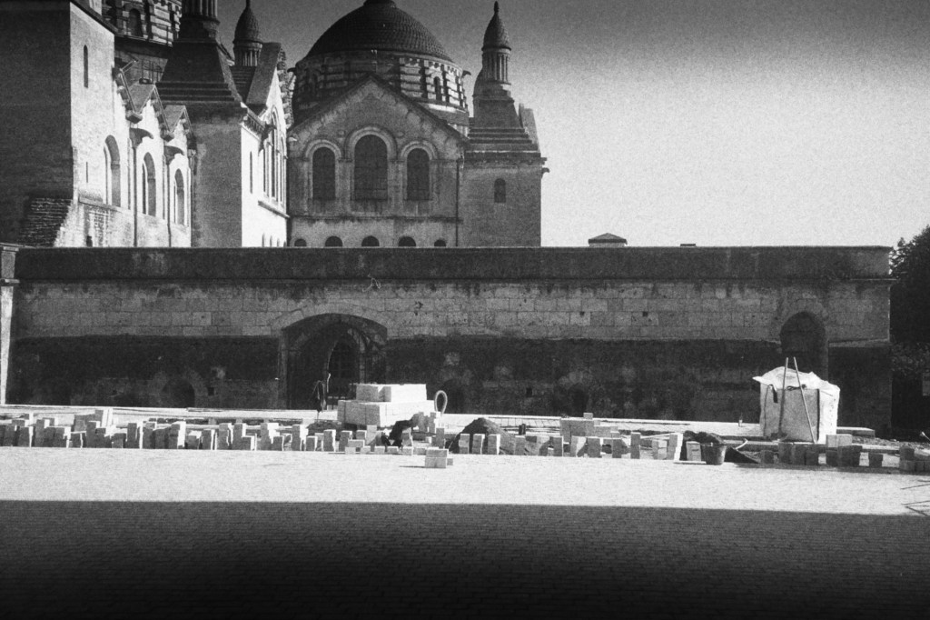 Construction in Place de la Clautre has been ongoing since my arrival. The workers’ progress in retiling the plaza has become a way of marking the passing of time in this small city. Just as time seems to pass more slowly in the winter, so too has the pasting and laying of tiles slowed during the colder months.