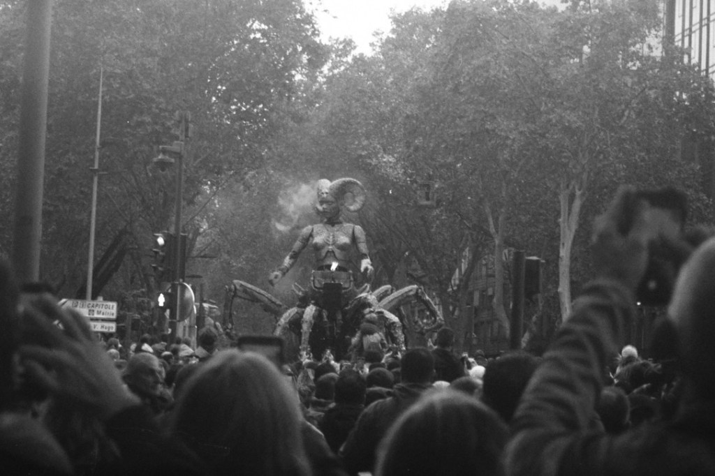 I arrived in Toulouse at 4PM on a Friday. My train was delayed and when we finally pulled into the station I heaved my duffel bag onto my back and strolled into the street. It was warm but cloudy, and my lower back sweated under the heat of my pack. Walking in the direction of my hostel, I was stopped in my tracks by a crowd of people. They were standing in front of two massive mechanical beasts: a Minotaur and a scorpion-woman. The beasts were not moving but the crowd was agitated and soon the performing troupe clambered into position, prodding at the panel that controlled the machines. The musicians strummed into life, creating an epic soundscape that reverberated off of the nearby buildings. Lifting my gaze, I saw that I was standing at the end of a giant boulevard. What I had imagined to be a small crowd really numbered in the thousands, stretching like a river toward the center of the city. My hostel was in that direction, beyond the pulsating mass of people. As the machines roared, breathing fire and puffing smoke through their animatronic nostrils, I walked briskly alongside them. My large duffel bag made it difficult to keep from bumping into people. All eyes were on the machines. I snapped pictures as I walked. The monumental creations sent the city into wondrous exhilaration, and in that grand Toulousain introduction I was swept up in fanfare.