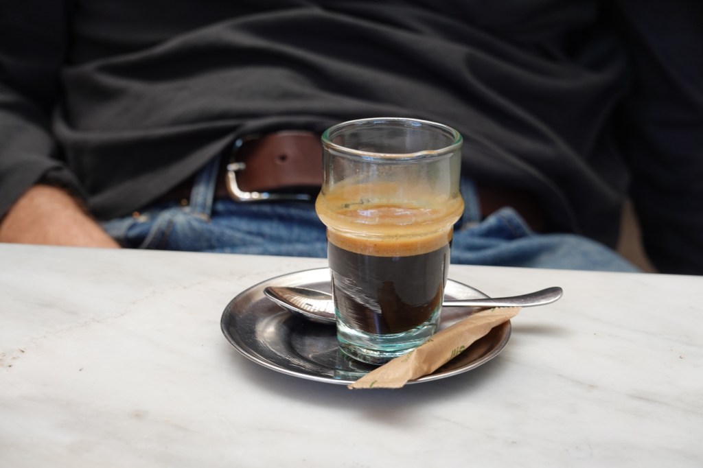 We struggled to catch a ride back to Marrakech. After a long wait, we were beat in a footrace to the oncoming taxi cars. We finally found two seats in the third arrival. From the taxi depot we walked through the New City of Marrakech to the train station, and in a fit of “hanger” we stopped at a French bistro. Salad, leafy greens, sweet relief.