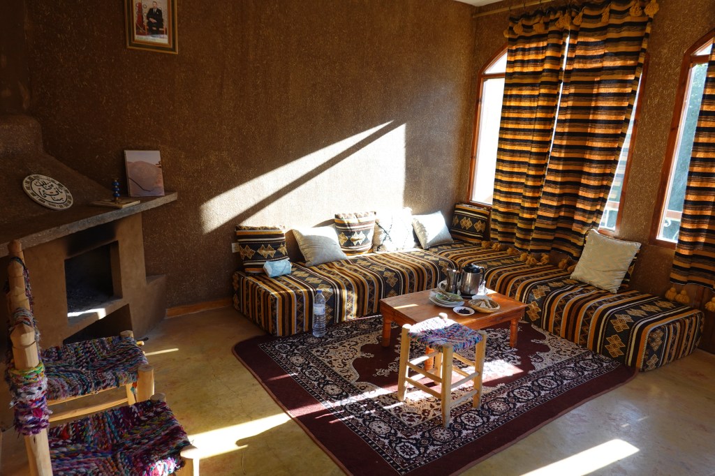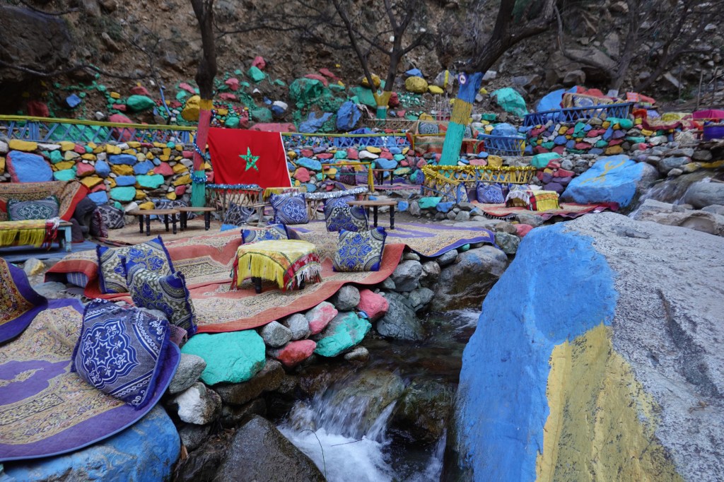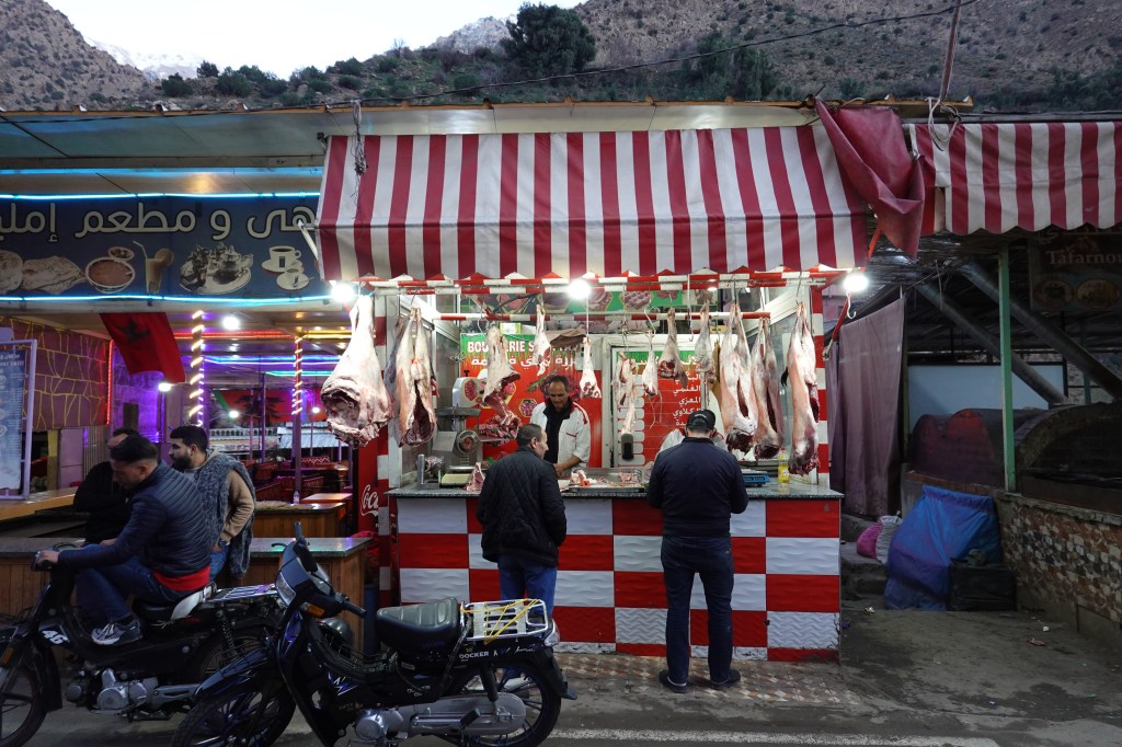 Sti Fadma is a small collection of shops and riverside café-restaurants lining the main road to the south. More dedicated travelers might plan a multi-day hiking excursion deeper into the High Atlas, if only to escape the buzz. Sti Fadma’s accessibility, only an hour’s drive from Marrakech, makes it a popular tourist destination. We sat at a restaurant for lunch. Cold mountain water rushed past us, fast and free, as though some great reward lay down in the valley. We ate quickly, covered in sun. Our Airbnb lay some 20 minutes down the road, and we marched with our bags. We would walk where it was easiest to see the oncoming traffic, sometimes running to the other side of the road before reaching a bend. Our accommodation was the second story of a rustic home, run by a man named Lhousseine, who kindly showed us our quarters before we walked back to Sti Fadma. Ten minutes into our stroll, we were able to hail a taxi. The traffic had eased and, arriving, we quickly arranged for a taxi to pick us up from our Airbnb the next morning, at 8AM, and stepped outside.